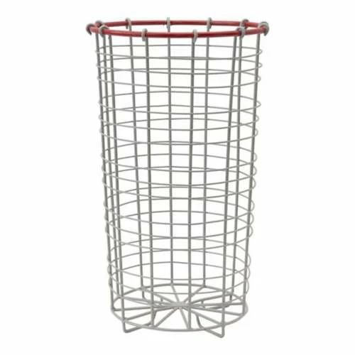 Catalog Name: 8-1/4″ Round x 13-3/4″H Metal Wire Basket w/ Red Rim, Zinc Finish