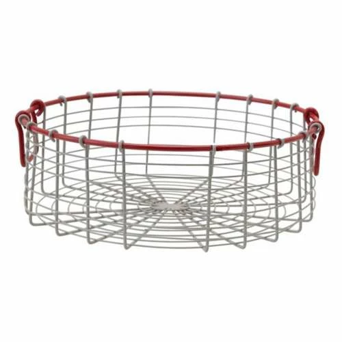 Catalog Name: 14″ Round x 5″H Metal Wire Basket w/ Red Rim & Handles, Zinc Finish
