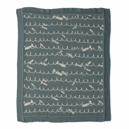 Catalog Name: 40″L x 32″W Cotton Knit Baby Blanket w/ Fish, Blue