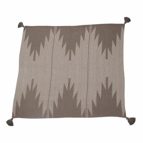 60″L x 50″W Woven Recycled Cotton Blend Throw w/ Aztec Pattern & Tassels, Tan Color