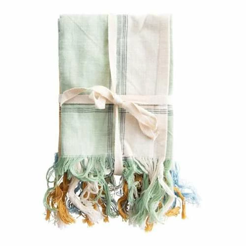 Catalog Name: 28″L x 18″W Cotton Tea Towels w/ Fringe, 3 Colors, Set of 3
