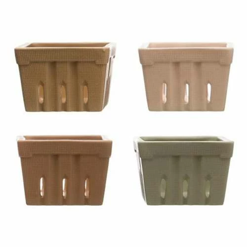 Catalog Name: 4″ Square x 3″H Textured Stoneware Berry Basket, Matte Finish, 4 Colors